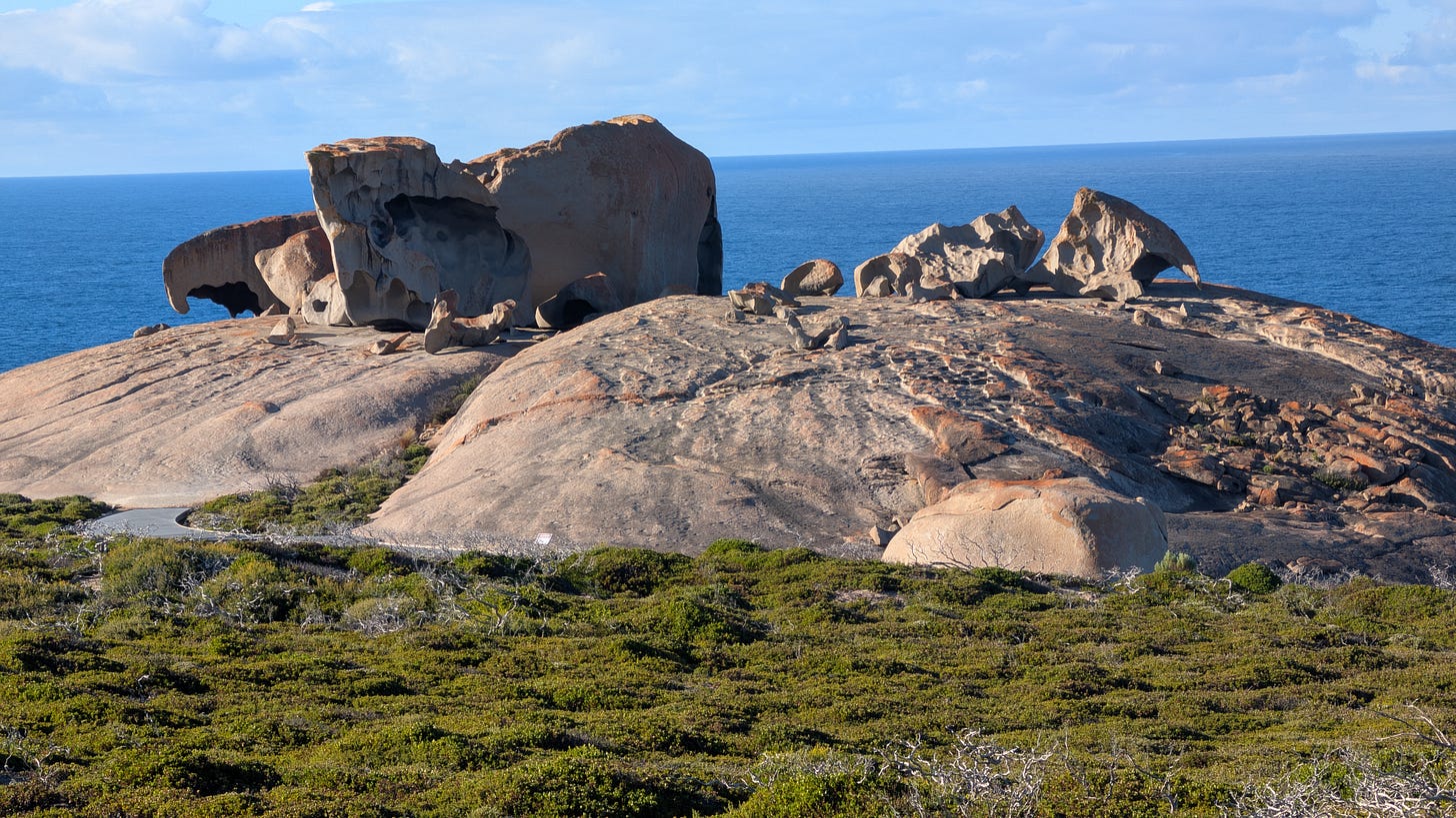 Named after the Grey Kangaroo that explorer Matthew Flinders saw a lot of on his first exploration here, the island is tiny but still feels vast, taking nearly 80min to drive from end to end. Despite the obvious imposition of dozens of tourists, it feels sparse enough for my desired escape to the end of the earth.