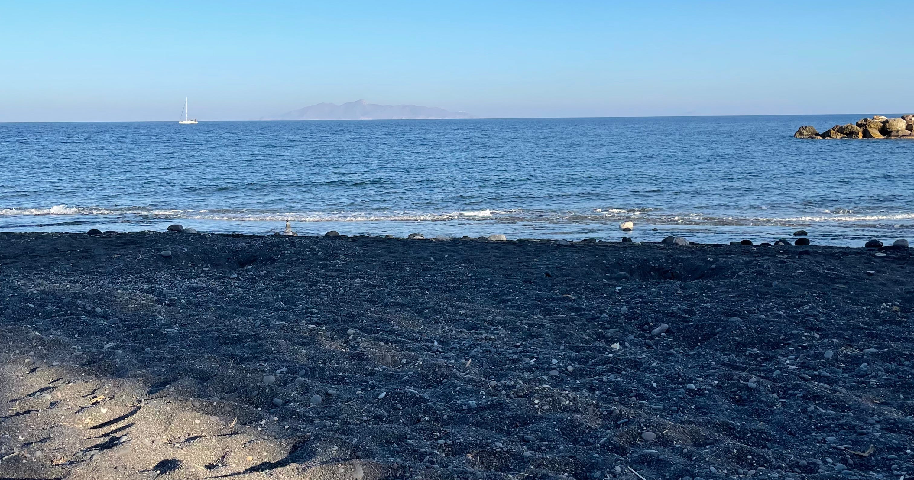 Kamari has much to offer - its historic dig site hosts what Assassin’s Creed: Odyssey would like to tell us is home to Atlantis, for instance. Its black beach is better for folks who have less time. Sure, the sand isn’t legitimately black (the only time we’ve ever seen that was in Sri Lanka, after the 2004 tsunami, so not a great memory). But it’s eye-catching, and this beach is a peaceful place in the off-season. Visit between November and April for low crowds, but also few amenities.
